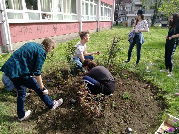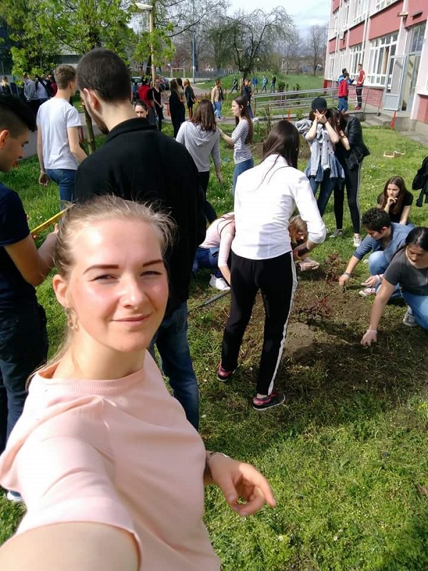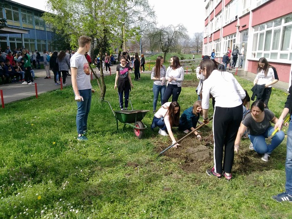 Akcija pod nazivom „Očistimo Teslić“ uspješno je izvršena u dvorištu naše škole. Naime, mnogi učenici svih razreda su učestvovali u akciji te su uz smijeh i pjesmu brzo izvršili zadatke. U sklopu akcije očistili su grančice i lišće iz trave, posadili su novo cvijeće, počupali travu i ošišali dugogodišnje biljke, a što se tiče izgleda enterijera ni tu nije falilo mašte jer su naši učenici posadili nove biljke i šarenim kreacijama uredili saksije. Ovu akciju predvodila je profesorica biologije Selena Đurić.