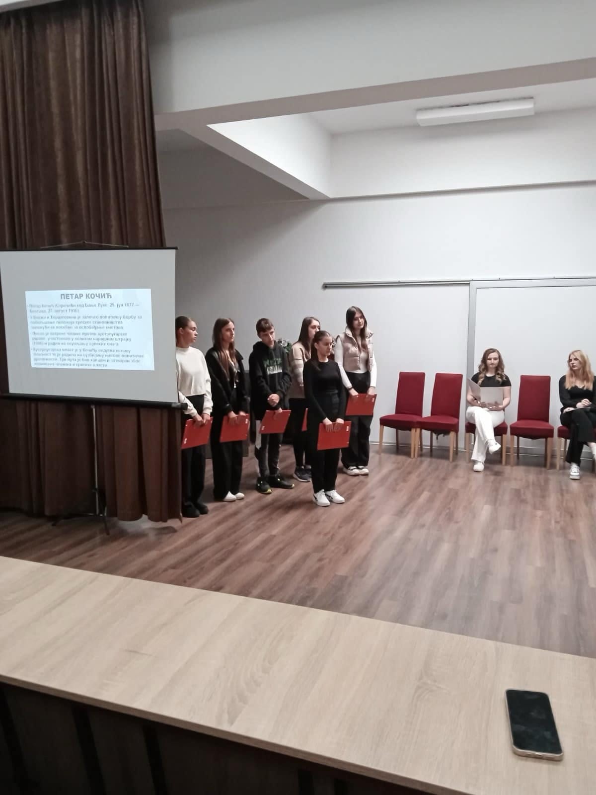 У форми поетског часа, ученици из одјељења: 1/5, 2/2, 2/4, 3/1 i 4/1, пјесмама и рецитивањем родољубиве поезије, указали су на значај српског јединства, чување традиције и јачање свијести о националном идентитету.