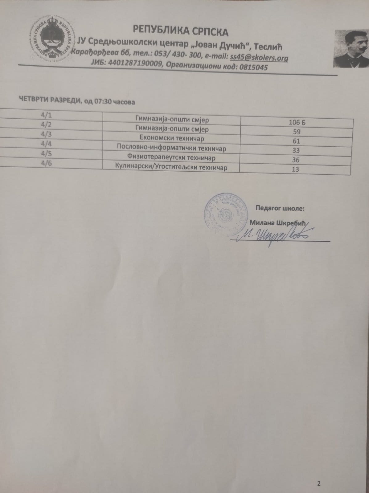 Ученици треба да дођу у школу и распореде се у учионице по табели која је у прилогу.